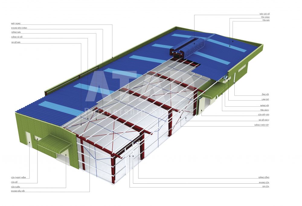 Nhà thép tiền chế được xây dựng từ 3 thành phần liên kết với nhau: